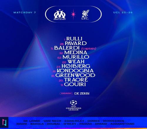 北京时间1月22日凌晨4点,欧冠联赛联赛阶段第7轮展开一场焦点战役,利物浦对阵马赛。赛前,双方公布首发阵容。